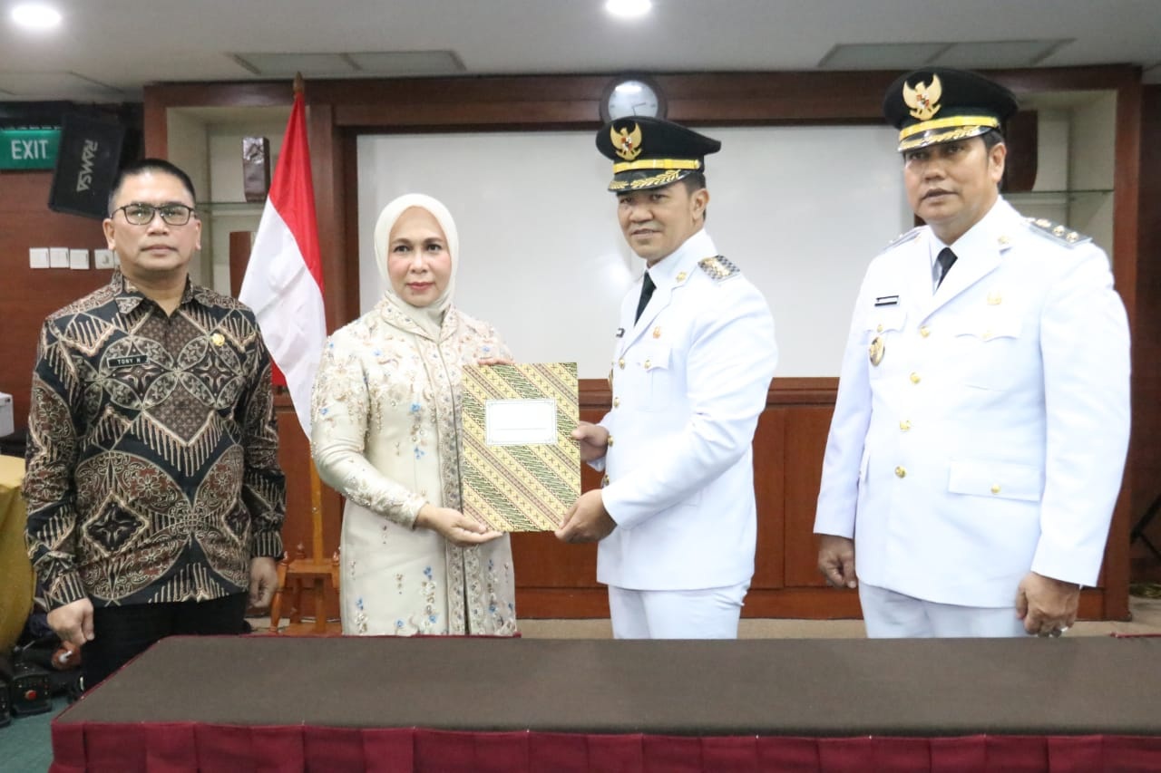 SERAH TERIMA JABATAN: Bupati dan Wakil Bupati Pulpis, H Ahmad Rifa’i dan H Ahmad Jayadikarta serah terima jabatan dengan Pj Pulang Pisau Nunu Andriani. FOTO: IST