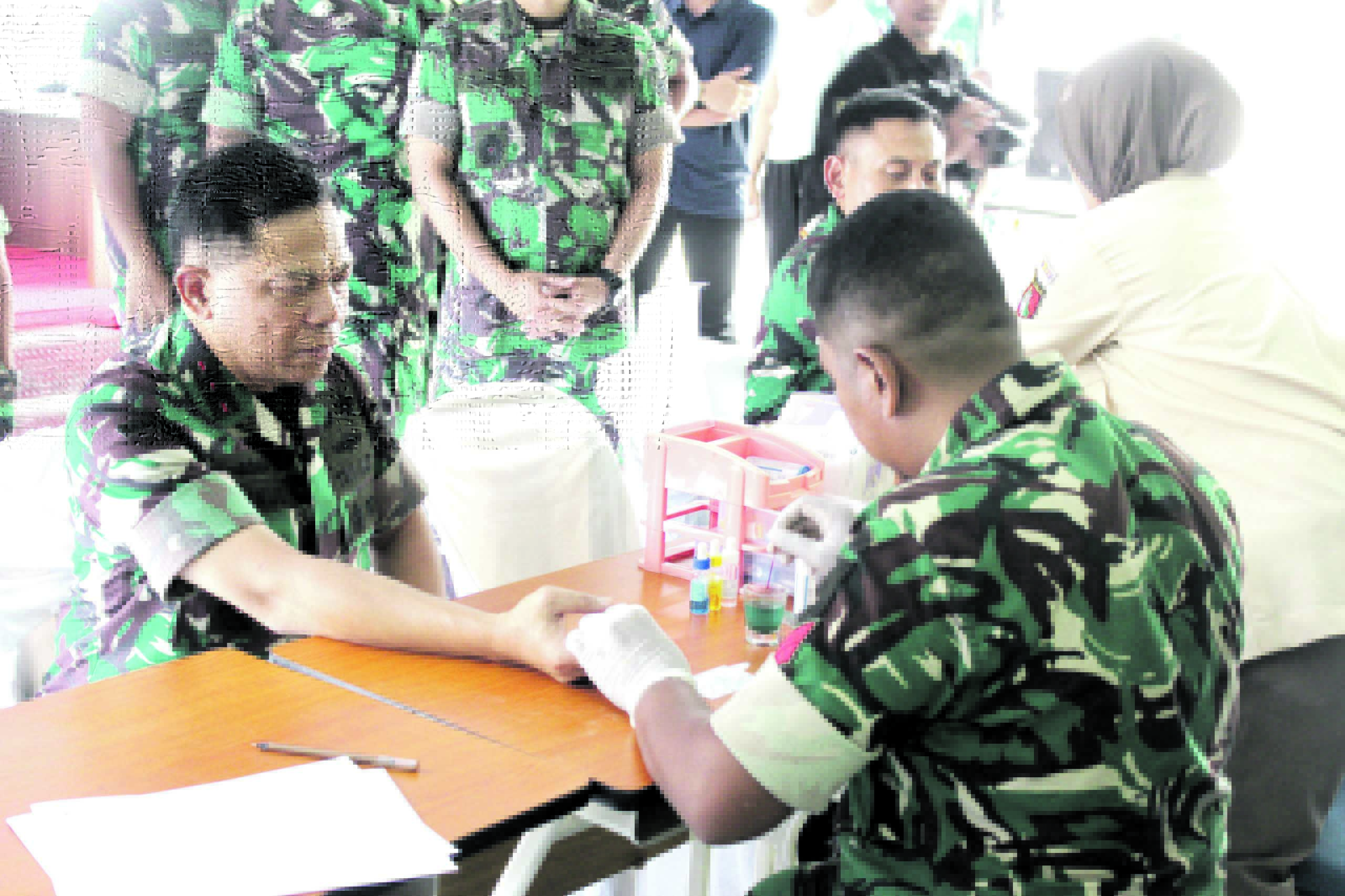 BAKSOS : Kodam XXII Tambun Bungai menggelar bakti sosial dalam rangka HUT ke-80 TNI tahun 2025. Pangdam Mayjen TNI Zainul Arifin juga mendonorkan darahnya untuk masyarakat, Minggu (21/9/2025).FOTO PENDAM XXII/TB