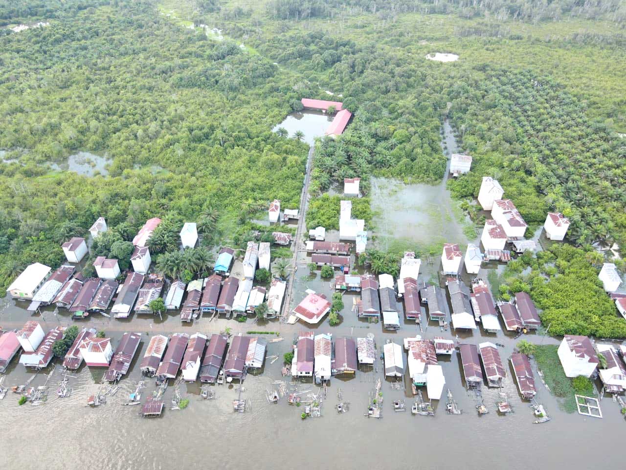 “Sejak awal kejadian, ada empat RT yang terdampak, yaitu RT 1, 2, 3, dan 4. Namun yang paling parah adalah RT 1 dan RT 4. Dari seluruh wilayah, hanya lima rumah yang benar-benar tergenang air hingga masuk ke dalam rumah. Selebihnya, rumah panggung membuat air hanya berada di bawah lantai,” jelas Multazam, Jumat (26/9/2025).