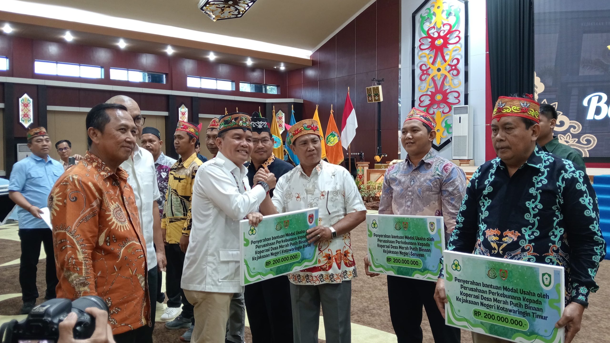 BANTUAN: Gubernur Kalteng, Agustiar Sabran, menyerahkan bantuan permodalan usaha bagi Pengurus Koperasi Desa Merah Putih se-Kalteng Tahun 2025, Jumat (26/9/2025).Foto: IFA/PE Raka