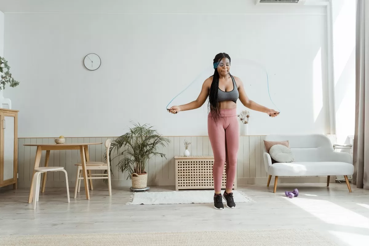 Lompat tali merupakan latihan kardio intensitas tinggi yang sangat efektif membakar kalori sekaligus memperkuat otot kaki, terutama betis.