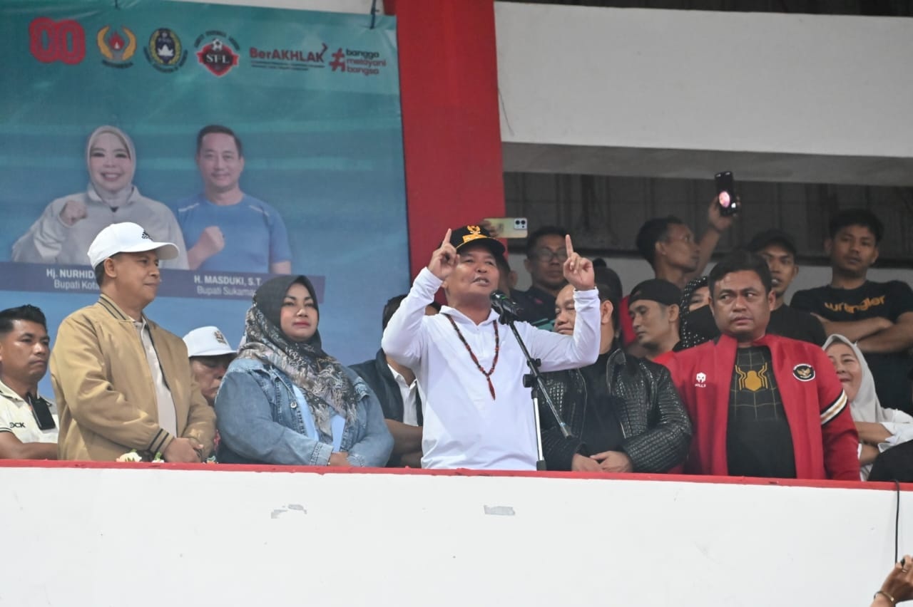 PENUTUPAN: Gubernur Kalteng, Agustiar Sabran, Resmi Tutup Turnamen Sepak Bola Gubernur Cup Zona Barat, Sabtu (4/10/2025) malam.Foto: IST