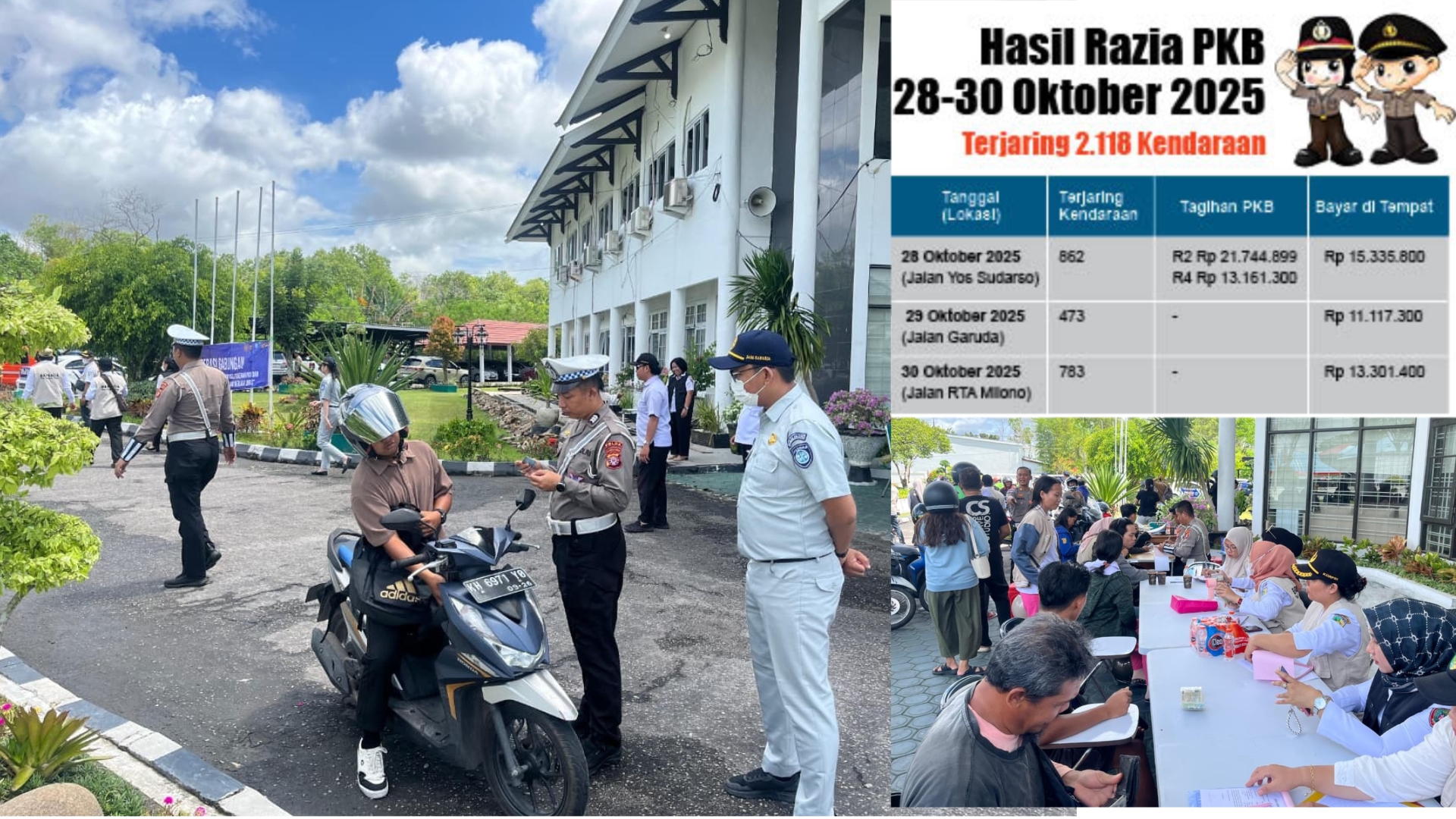 PALANGKA RAYA – Sebanyak 2.118 kendaraan bermotor terjaring dalam razia pajak kendaraan bermotor (PKB) yang dilaksanakan petugas gabungan selama tiga hari. Penertiban PKB tersebut dilaksanakan mulai tanggal 28 hingga 30 Oktober 2025 di tiga tempat berbeda.