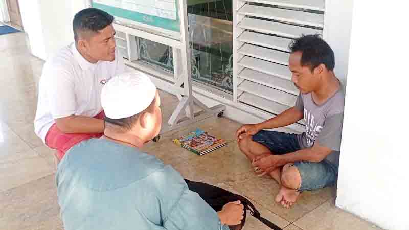 DI MASJID: Tersangka Ahmad Husaini (kanan) saat dibincangi pengurus Masjid. Pihak masjid memutuskan tidak melanjutkan kasus ini ke ranah hukum dan memilih melepas pelaku setelah membuat pernyataan tertulis. FOTO WARGA UNTUK RADAR KALTENG