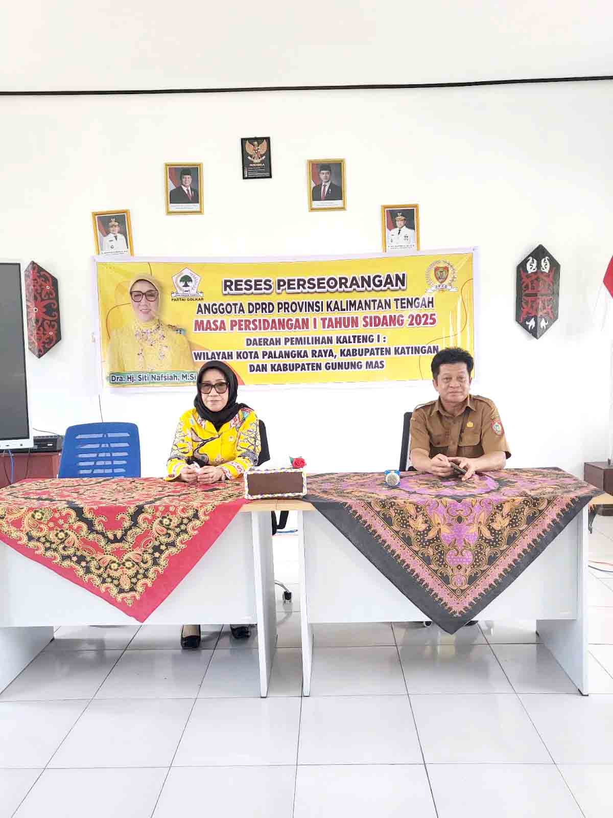 PALANGKA RAYA – Legislator DPRD Kalimantan Tengah, Siti Nafsiah, telah menyelesaikan kegiatan Reses Masa Persidangan I Tahun Sidang 2025 yang dimulai sejak 2 November 2025. Reses ini dilaksanakan di Daerah Pemilihan (Dapil) I, meliputi Kabupaten Gunung Mas, Kabupaten Katingan, dan Kota Palangka Raya.