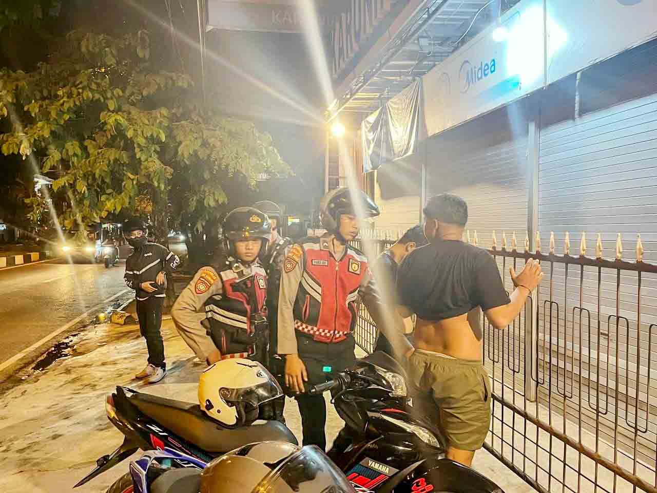 PEMERIKSAAN: Tim gabungan melakukan pemeriksaan terhadap sejumlah remaja diduga pelaku balap liar, Minggu malam (16/11/2025). HUMAS UNTUK RADAR KALTENG