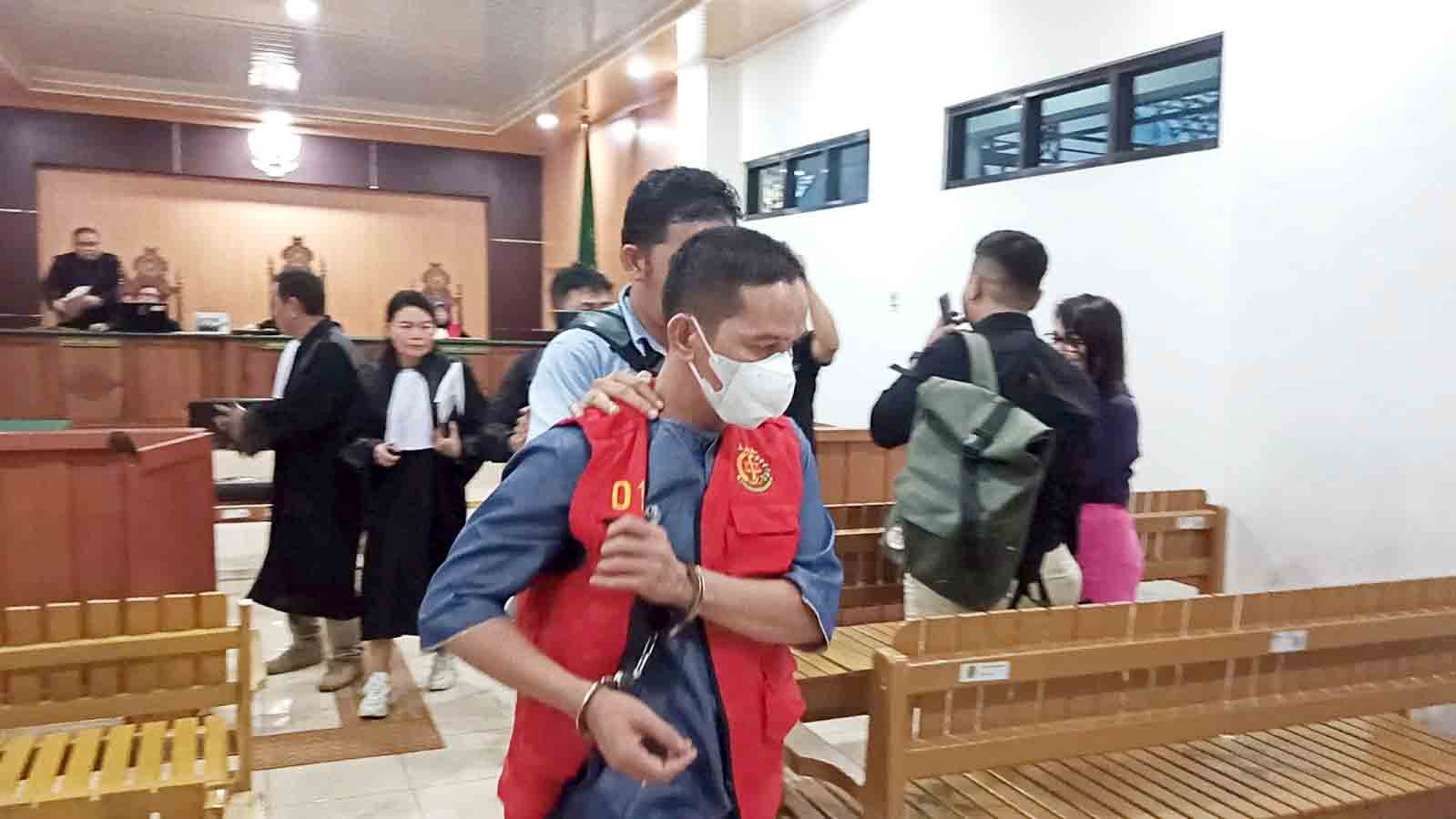 KASUS TPPU : Saleh bin Abdullah alias Salihi , terdakwa kasus TPPU yang merupakan bandar besar narkoba keluar ruang persidangan Kantor Pengadilan Negeri Palangka Raya, Selasa (18/11/2025). FOTO RADAR KALTENG
