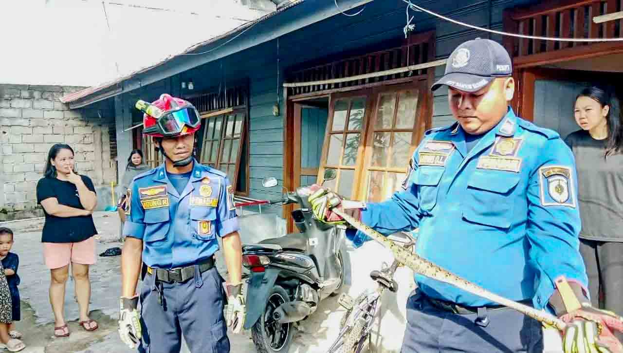PALANGKA RAYA – Memasuki musim hujan, warga Kota Palangka Raya kembali dihadapkan pada meningkatnya pergerakan satwa liar yang masuk lingkungan permukiman. Akhir pekan lalu, dua ekor ular piton ditemukan masuk rumah warga di dua lokasi berbeda. Hal ini memicu kepanikan dan membuat Tim Rescue Pemadam Kebakaran (Damkar) Kota Palangka Raya harus turun tangan.