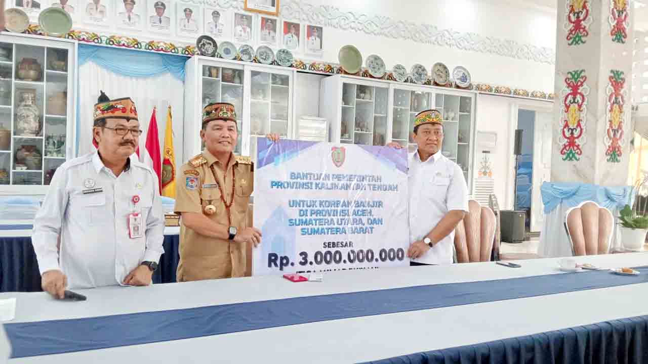 PALANGKA RAYA – Pemerintah Provinsi (Pemprov) Kalimantan Tengah (Kalteng) menyalurkan bantuan kemanusiaan uang tunai Rp 3 miliar bagi korban banjir bandang untuk 3 provinsi di Pulau Sumatera. Yaitu Aceh, Sumatera Utara (Sumut), dan Sumatera Barat (Sumbar), Rabu (3/12/2025).