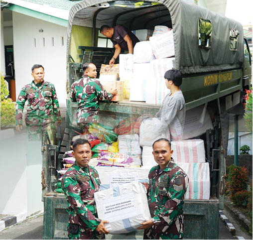 Dandim 1016 Palangka Raya Letnan Kolonel Inf Kurniawan Agung Sancoyo menyampaikan, sebelum diberangkatkan ke lokasi bencana, bantuan logistik yang dikumpulkan dari anggota Kodim 1016/Plk dan masyarakat binaan dipusatkan di Makodim 1016 Palangka Raya, Senin pagi (8/12/2025).